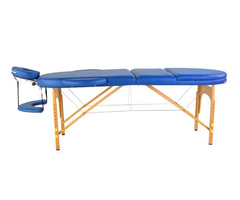 2 delna ovalna masažna miza je narejena iz trpežnega lesa. Dobro stabilna in primerna za vse vrste masaž. Poleg masažne mize je tudi torba za prenašanje.